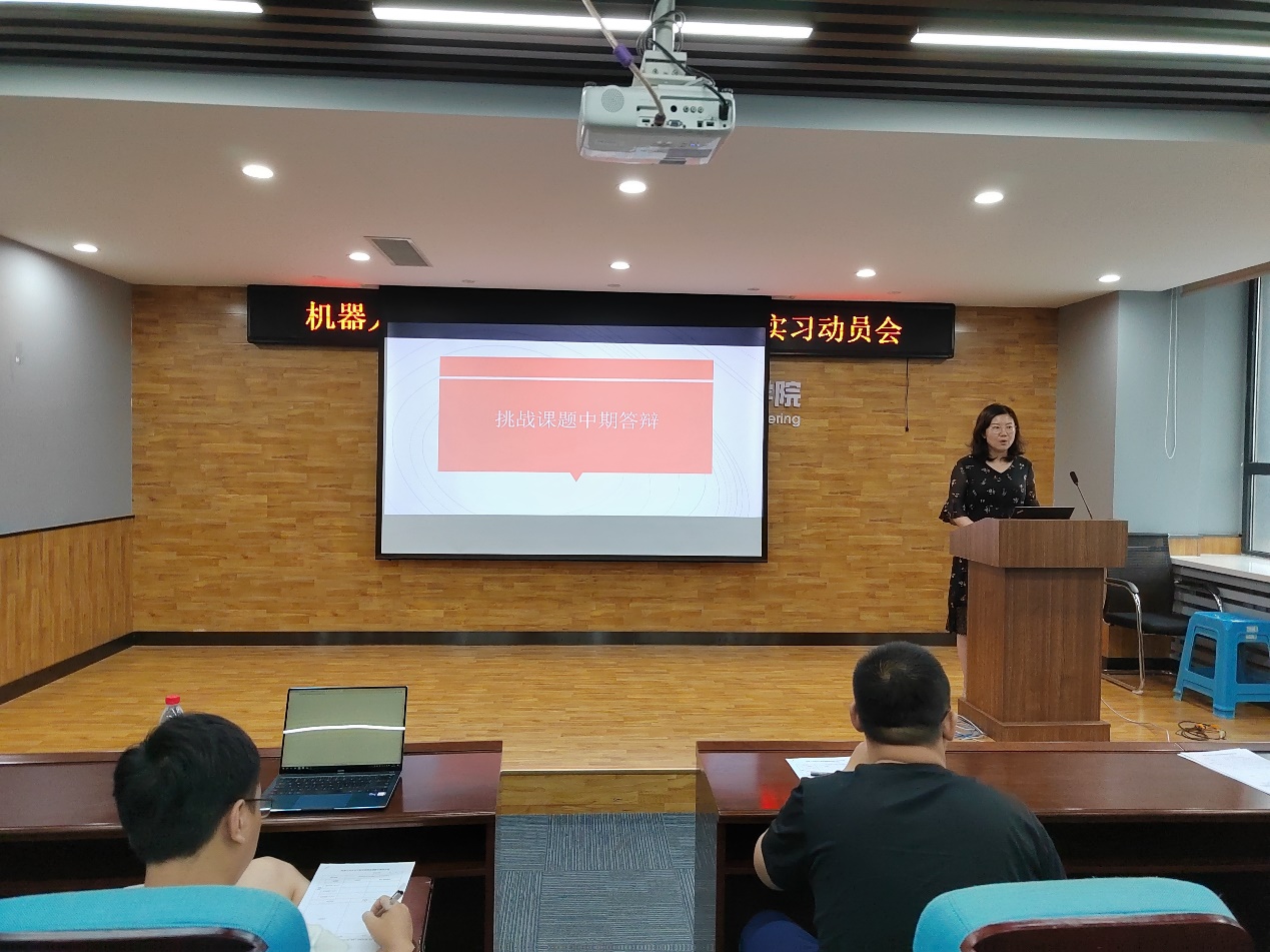 2023年7月4日,机器人学院举行“挑战课题”中期答辩。学院所有本科挑战课题老师和同学以及实验中心相关负责教师参加本次答辩。