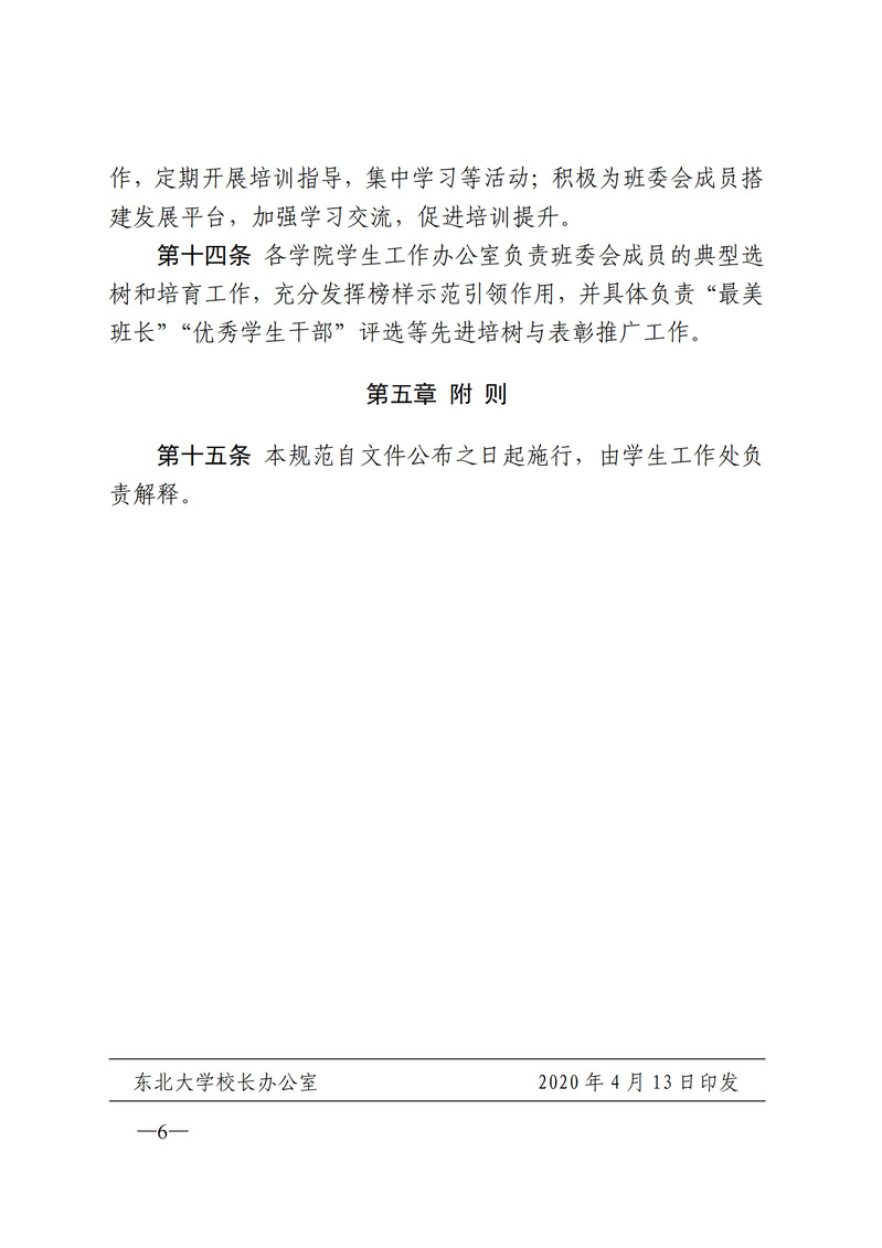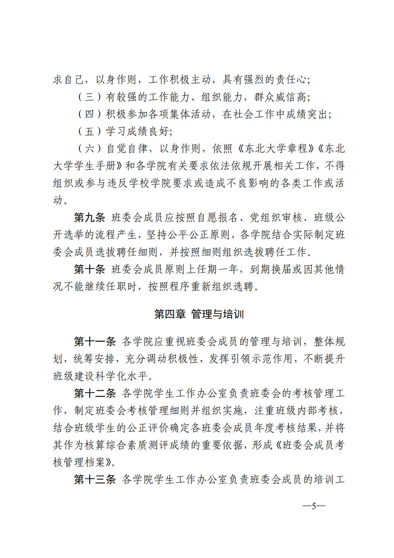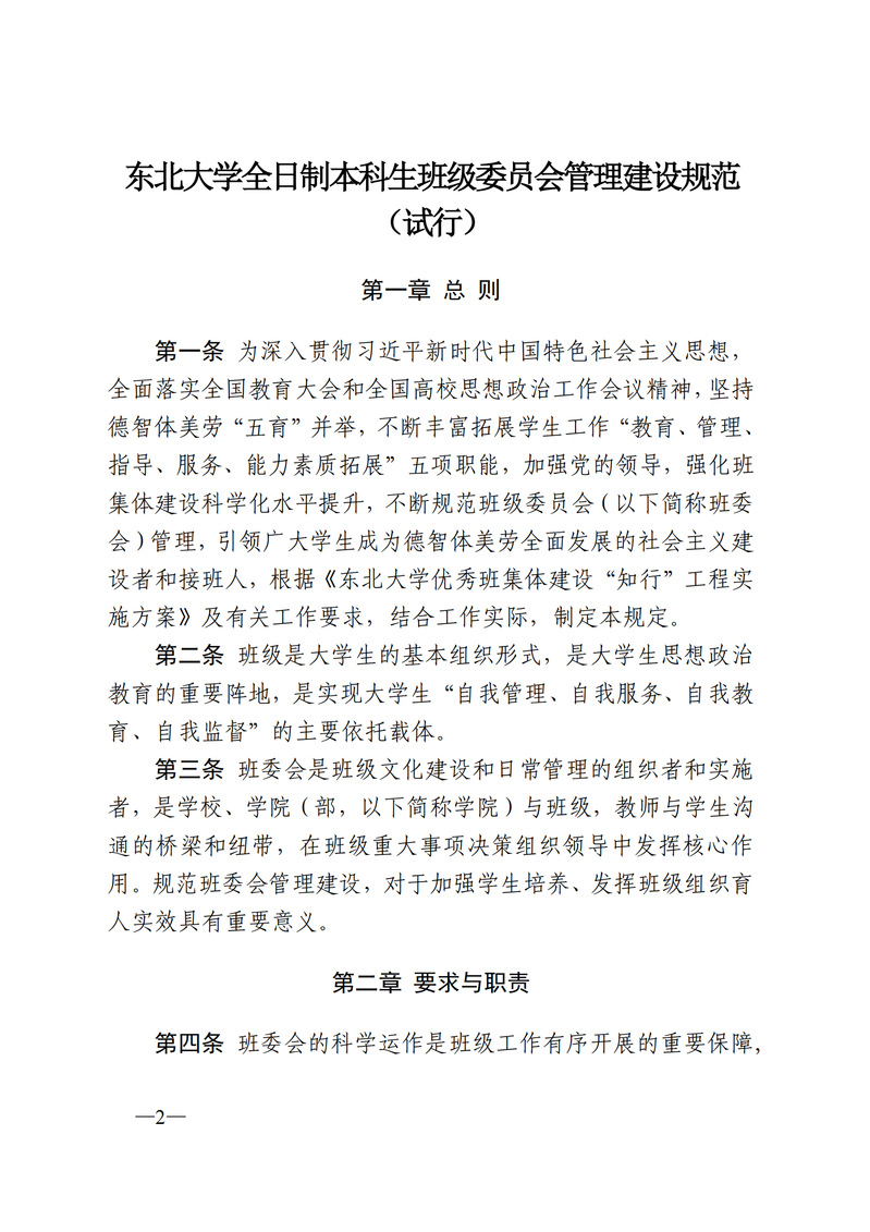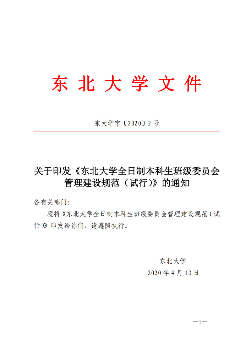 关于印发《东北大学全日制本科生班级委员会管理建设规范(试行)》的通知