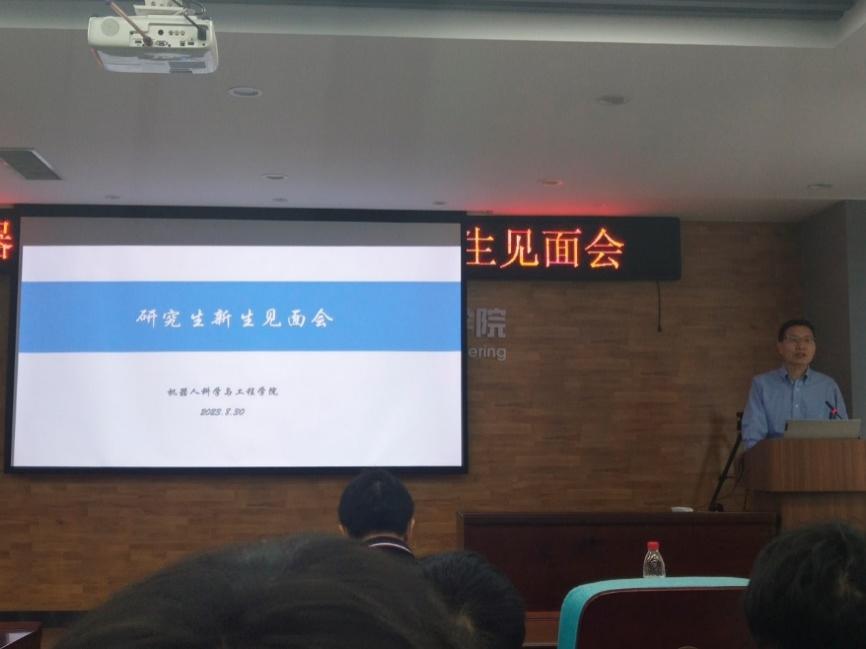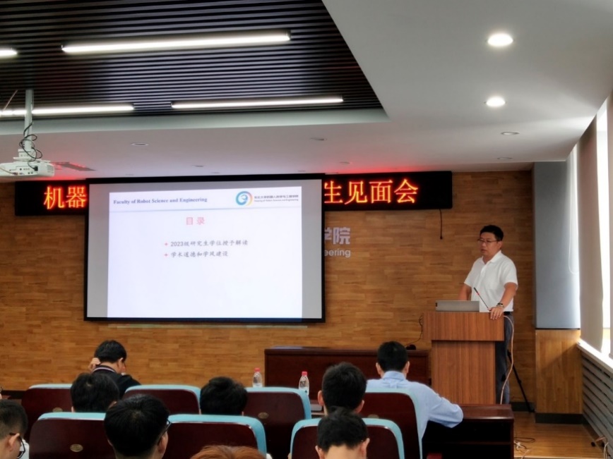 8月30日,机器人科学与工程学院2023级研究生新生见面会在浑南校区建筑馆B302成功举办。东北大学未来技术学院院长、机器人科学与工程学院常务副院长付俊,机器人科学与工程学院副院长贾子熙、严志刚,学生工作办公室主任张孟新,综合办公室副主任冯德慧,2023级全体硕士、博士研究生参加了此次新生见面会。会议由严志刚主持。