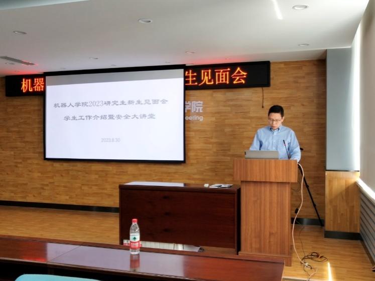 付俊首先致辞欢迎2023级硕博新生。然后他表示机器人学院已经为机器人与人工智能领域培养了很多优秀人才,下一步下一步将重点培养工业与特种机器人、关键共性技术和智慧医疗机器人方面的领军人才。最后,他希望新生们能够厚植家国情怀,把实现个人价值同民族复兴、强国建设紧紧联系在一起;能够锤炼品德修为,做德才兼备的时代新人;能够培育创新创造精神,为实现我国高水平科技自立自强贡献力量。