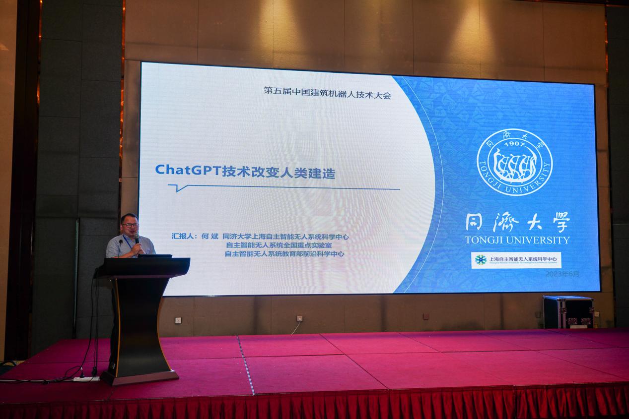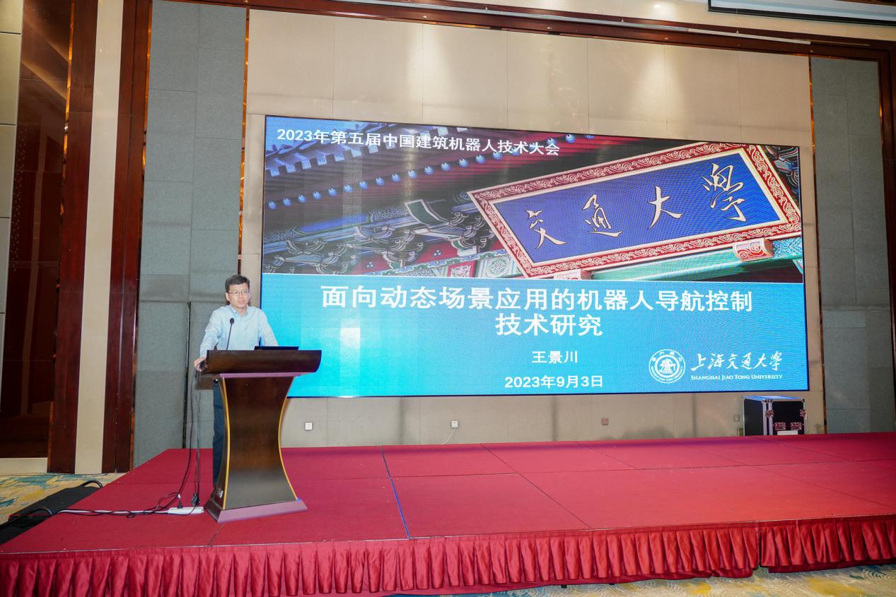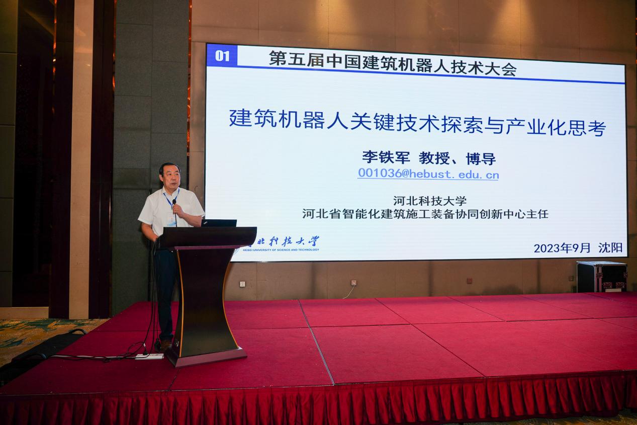 吴成东、李贻斌主持大会主旨报告。报告人李铁军从建筑机器人的需求与发展趋势、关键技术探索、研发与实践、产业化思考四个方面介绍了建筑机器人的发展前景。曹建福阐释了建筑机器人的发展历程、关键技术、软件开发和未来发展。王景川介绍了面向动态场景应用的机器人导航控制技术。何斌分析了ChatGPT对智能制造产生的深远影响。杜振军从沈阳新松机器人公司发展历程出发,阐释了对建筑机器人行业发展的思考。