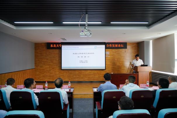 为迎接东北大学100周年校庆,营造浓厚的学术氛围,加强校企交流合作,助力学院持续蓬勃发展,2023年9月14日,东北大学机器人学院成功举办“学校--企业--校友”合作发展论坛。新松半导体设备有限公司、沈阳吕尚科技有限公司、浪潮集团浪潮智能终端有限公司、东软集团股份有限公司、亚龙智能装备集团股份有限公司、山东山速机器人科技有限公司、潍柴动力股份有限公司代表出席本次论坛。开幕式由机器人学院副院长范松涛主持。