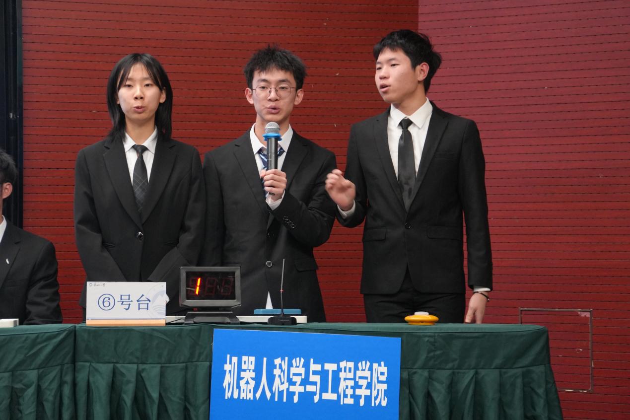 近日,经网络答题,按照学生考试成绩及参与度进行学院排名,机器人科学与工程学院顺利闯入决赛。决赛中,经过激烈的比赛,由2022级本科生陈薇帆、罗志宇、陈嘉俊三位同学组成的我院代表队取得总分第二名的好成绩。