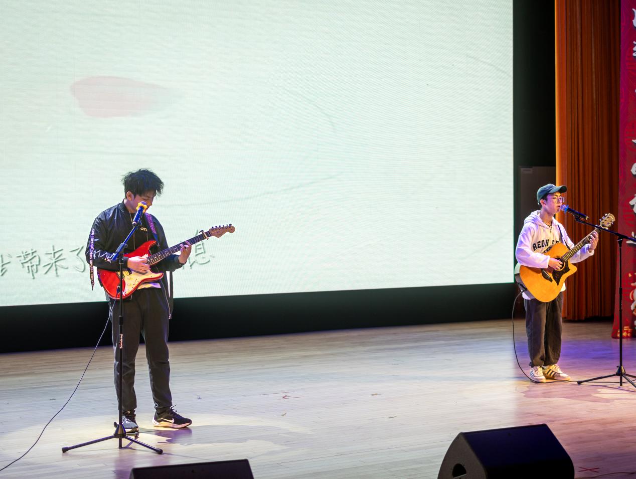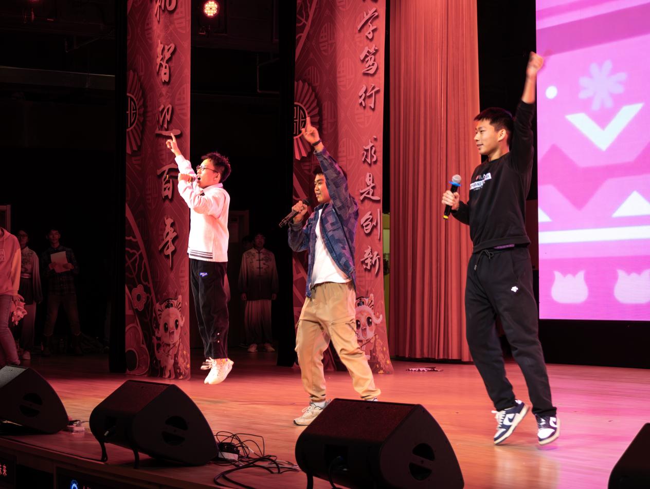 本次元旦晚会共分为“万里蹀躞,以此为归”、“揆诸当下,生命静听”、“芳华待灼,行而不辍”三篇章,共有师生表演的涵盖歌舞、乐器、语言12个节目,并设置抽奖环节。晚会在师生的欢声笑语中结束。