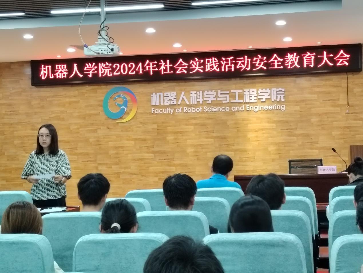 7月16日,机器人科学与工程学院2024年社会实践活动安全教育大会在浑南校区建筑学馆B302教室成功举办。机器人学院副院长姜铭奎出席会议,全体辅导员、2024年暑期社会实践团全体成员参加会议。