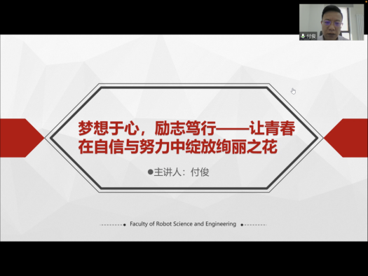 校园封闭管理期间,机器人科学与工程学院充分利用党领导下专兼结合的育人队伍体系,积极落实《机器人学院班子成员联系本科生班级制度》《机器人学院班导师工作制度》等。常务副院长付俊作“梦想于心,励志笃行”主题报告,鼓励学生突破自我,打破常规,敢想敢为,志存高远;副院长严志刚寄语学生把个人发展融入大时代当中,在时代浪潮中贡献自己的力量;副院长贾子熙为学生作科研竞赛指导,鼓励学生善用、用好学院丰富的科研资源提升科研能力,积极走进实验室,将书本上的知识付诸实践;副院长范松涛希望同学们在升学还是工作的分水岭前,要认真思考,做好生涯规划。班导师王斐从科研发展的角度分享了考研、读研的核心思路;茹敬雨从丰富个人简历、提升自身能力、锻炼团队协作等方面鼓励学生参与科研竞赛之中;张祥越建议学生根据兴趣明确学习方向,尽早做好未来发展规划;王军义希望学生做好个人安全防护,合理安排作息,利用课余时间学习专业技能、提升专业素养;房立金鼓励学生要尽早确立目标并为之努力奋斗;丁其川从生涯规划的角度,对处于不同毕业去向的同学提出建议。