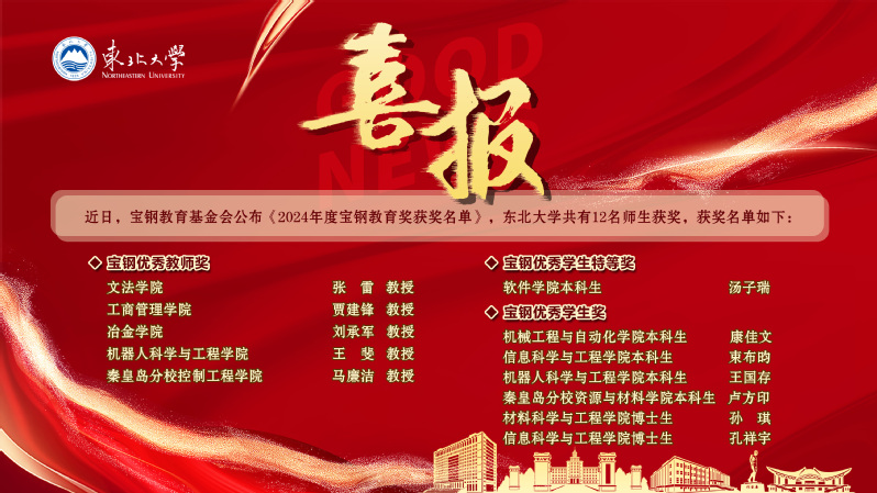 据悉,宝钢教育奖设立于1990年,每年评选一次,在全国120余所高等院校中评选,是高校积极参与的全国最具影响力的教育奖项之一,共设立优秀教师奖、优秀教师特等奖提名奖、优秀教师特等奖、优秀学生奖、优秀学生特等奖5个奖项,旨在“奖掖优秀人才,力行尊师重教,推动产学合作,支持教育发展”。经过为期6个多月的宣传、发动、申报和评审等环节,经2024年度宝钢教育奖评审工作委员会议审议和确认,我校共有7名学生、5名教师获得2024年度宝钢教育奖。