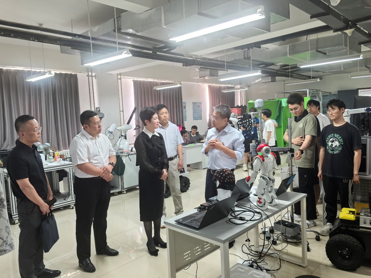 省残联一行首先来到学院学科实验室,在学院的精心组织下,深入了解人机共融课题组在机器人辅助医疗康复领域的最新科研进展。科研团队现场演示了面向聋人双向交互的大语言模型驱动手语数字人、具身智能导盲犬、艺术疗愈脑-机接口、肢体康复外骨骼等一系列医疗康复机器人系统。这些凝聚着科研团队智慧与心血的成果,充分展现了科技创新服务民生的强大力量。